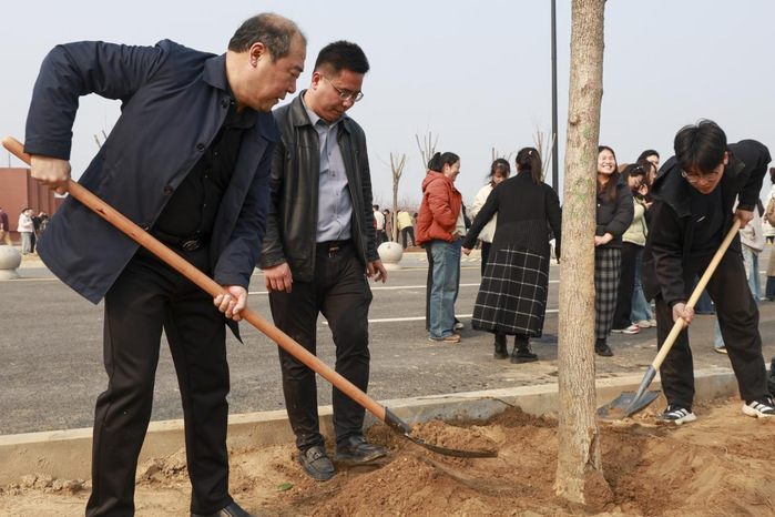 春风催新绿,植树正当时。在第47个植树节来临之际,为深入践行绿色发展理念,共建美丽校园。开封职业学院党政办公室、总务处联合组织开展了此次植树活动,学校校领导和相关部门教职工代表积极参与,共同为校园增添一抹新绿。